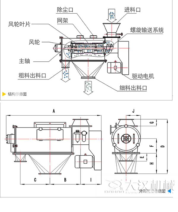 優勢 氣旋篩由于其形體為橫臥式所以也被稱為臥式氣流篩或臥式氣流篩分機。