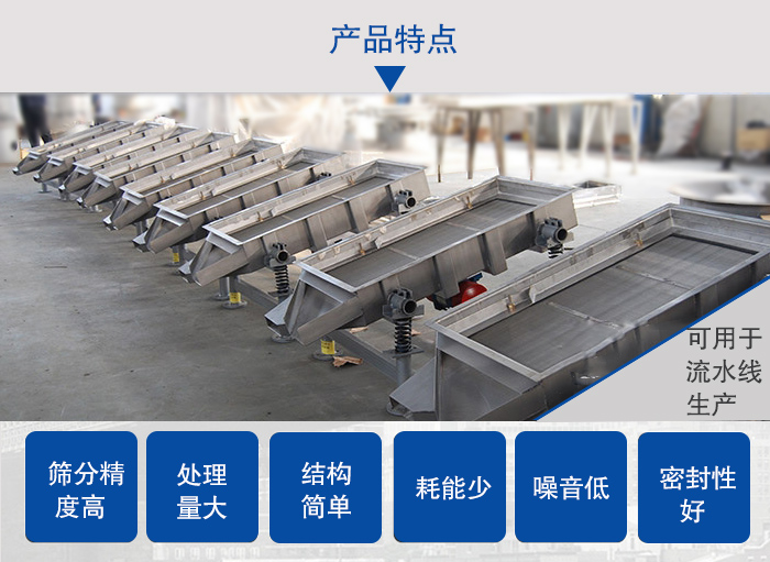 篩分精度高、處理量大、結(jié)構(gòu)簡單、耗能少、噪音低、篩網(wǎng)使用壽命長、密封性好、無粉塵溢散、維修方便、可用于流水線生產(chǎn)中的自動(dòng)化作業(yè)。