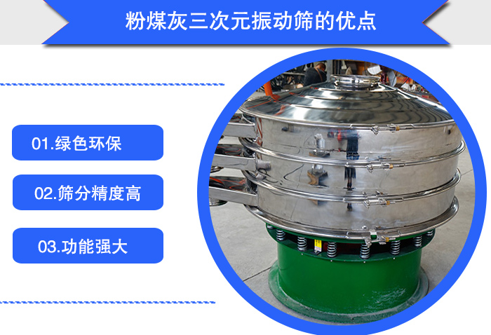 大漢機械技術部根據(jù)粉煤灰是粉末狀物料,容易產(chǎn)生揚塵,所以推薦使用三次元振動篩進行篩分。