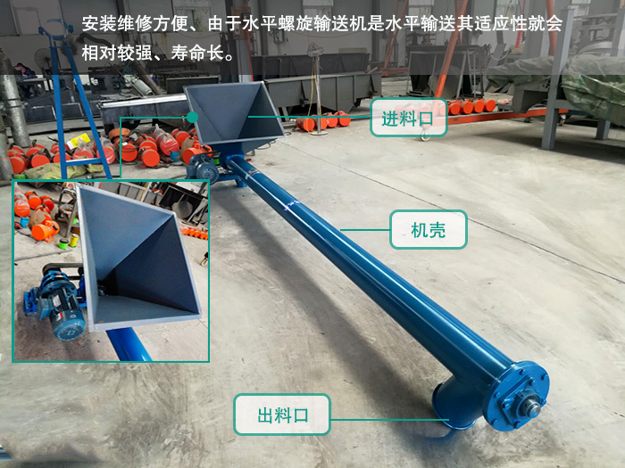 水平螺旋輸送機的整機體積小主要是因為水平螺旋輸送機的,結(jié)構(gòu)相對比較緊湊且合理同時還采用了高功率的電機助力其轉(zhuǎn)速就會非常的高、在高轉(zhuǎn)速的情況下就能確保水平螺旋輸送機快速且均勻輸送。