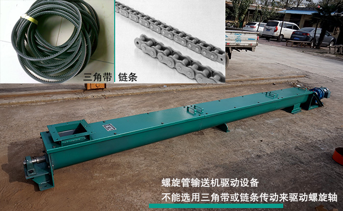 (1)螺旋管輸送機驅動設備不能選用三角帶或鏈條傳動來驅動螺旋軸,以防止軸端在徑向力效果下,發生懸臂載荷,使整個機體脫離托輪。