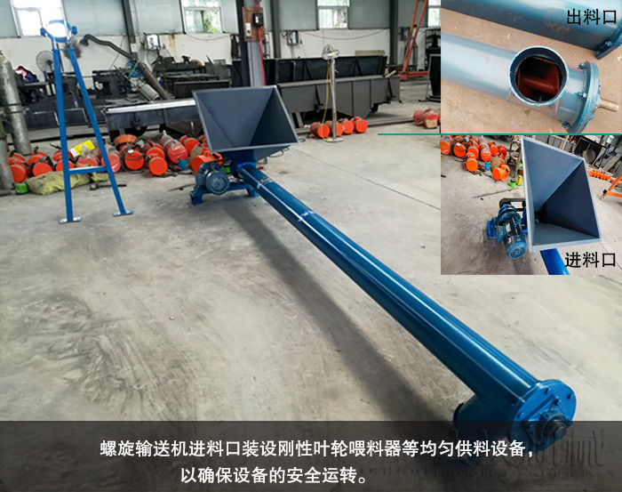 (2)因而須在螺旋輸送機進料口裝設剛性葉輪喂料器等均勻供料設備,以確保設備的安全運轉。