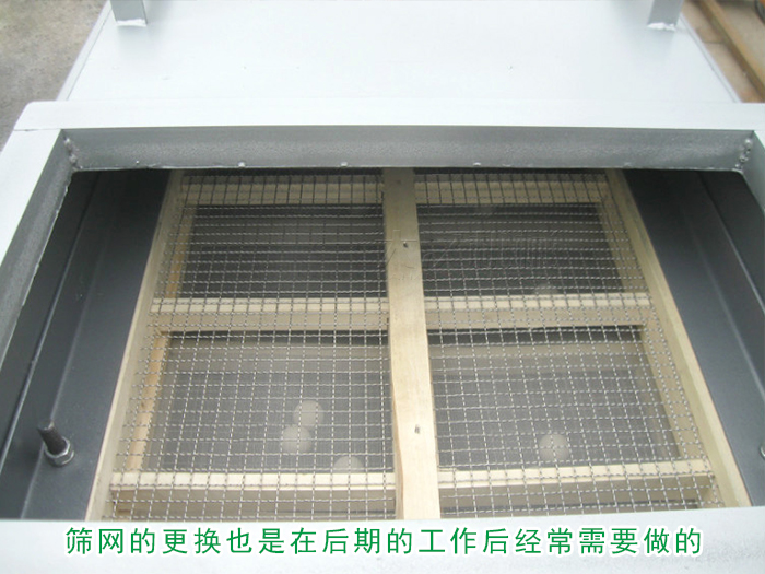 2)換上新的篩網,張緊篩網,使左側鉤板處于鉛錘位置,張緊右側篩網鉤板,再將左側張緊,擰緊螺栓即可。