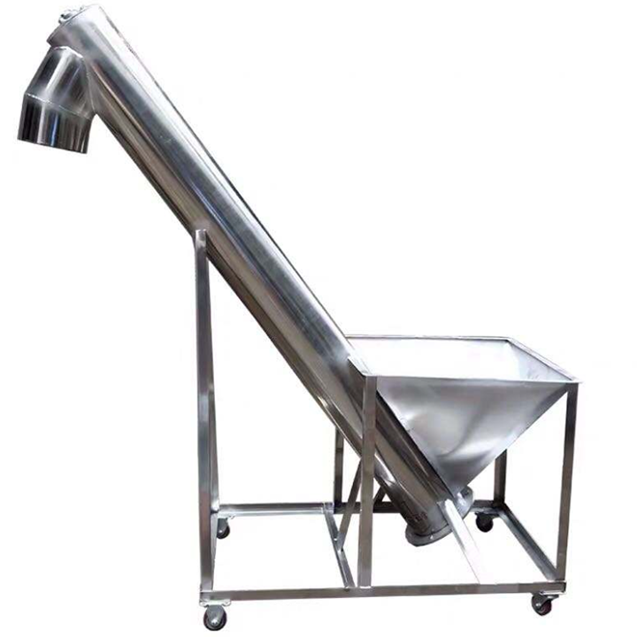 傾斜粉末螺旋輸送機的輸送能力隨角度增加而下降,可傾斜的角度不大于45°,如果想垂直輸送,需要大功率的電機。該設備不適合輸送粒徑太細的粉末,因為粉末在傾斜時更容易回流。可以和包裝機、料倉等搭配使用,以組成流水線。