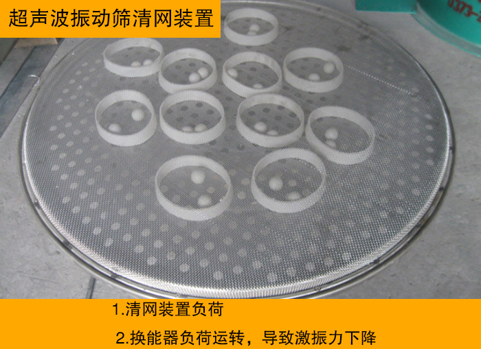 對于超聲波振動篩來說,清網裝置也是提供振動力的第二動力源,如果換能器過熱或超聲波電源不能正常運行也會導致振動力減小。應立刻對其檢查,通常來說換能器運行時正常溫度在60℃,如發現溫度異常應停機檢修。